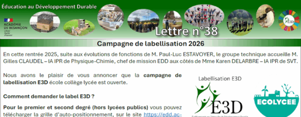 Nous avons le plaisir de vous annoncer que la campagne de labellisation E3D école collège lycée est ouverte. Comment demander le label E3D ? Pour le premier et second degré  vous…